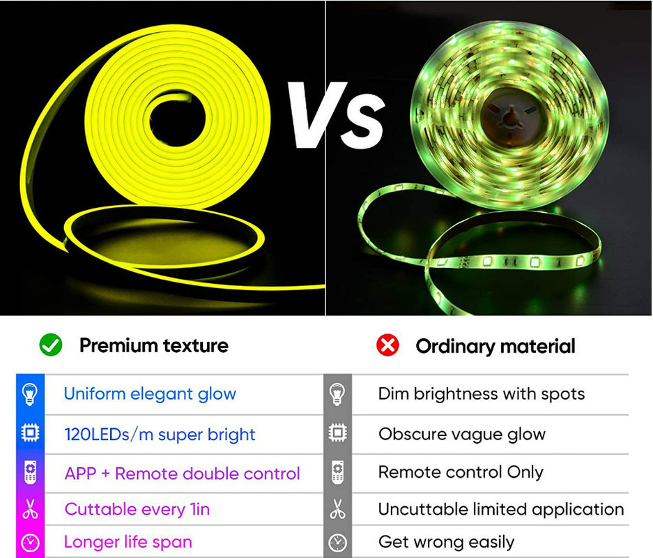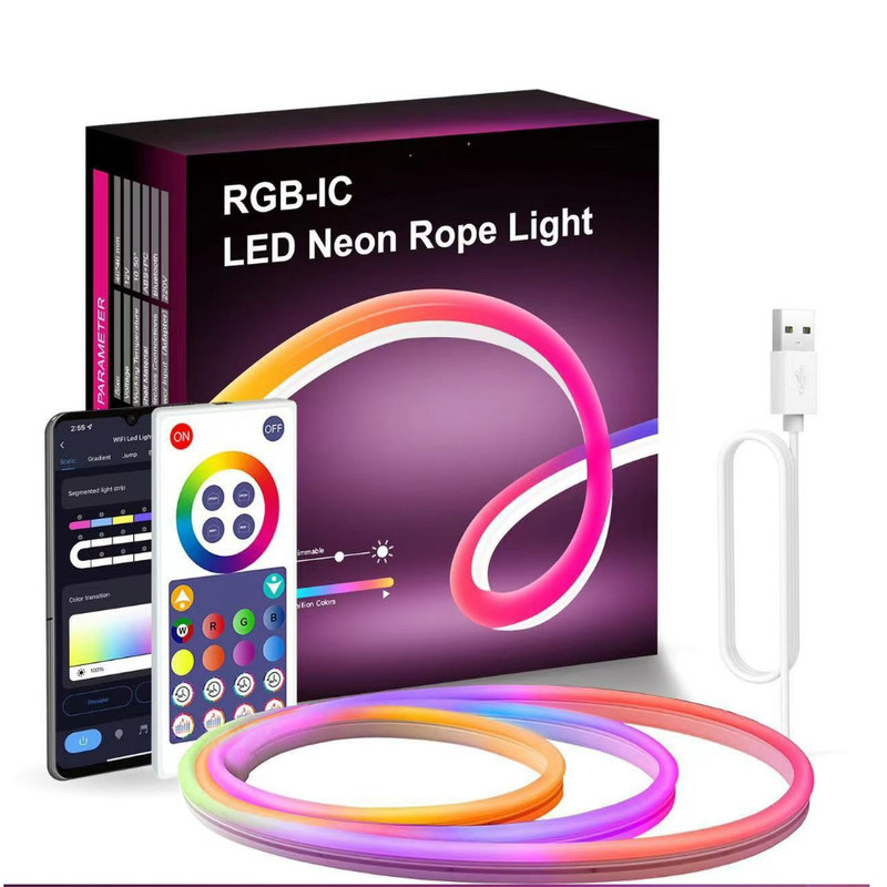 एलईडी नियॉन रोप लाइट्स 5m फ्लेक्सिबल कंट्रोल ऐप रिमोटमल्टीपल मोड्स RGB नियॉन लाइट्स